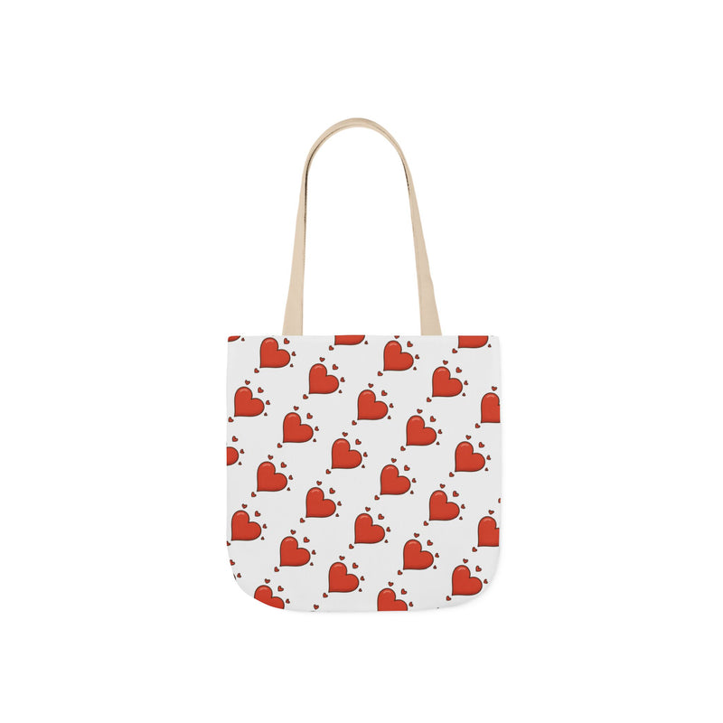 Heart Print Canvas Tote Bag with 5-Color Straps -